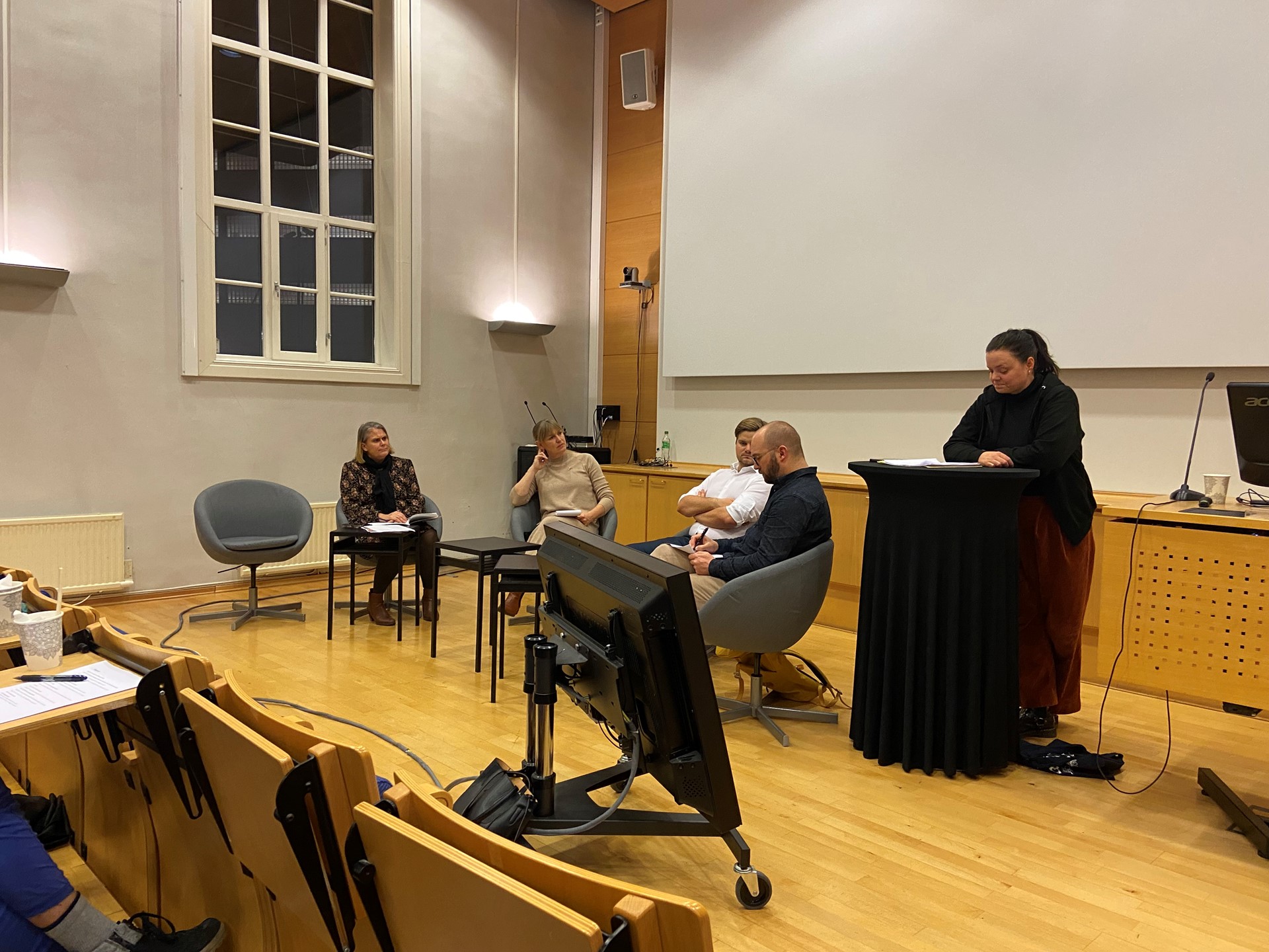 Konferansen ble avsluttet med en debatt med stortingspolitikere fra SV, Arbeiderpartiet og Rødt, i tillegg til Senterpartiets bystyrerepresentant i Oslo kommune. Vi minnet de folkevalgte på viktigheten av å huske på den kommunale boligsektoren når de setter i gang arbeidet med å utforme en bedre boligpolitikk, og når husleieloven sannsynligvis skal revideres i løpet av den kommende stortingsperioden. Det var stort engasjement blant publikum, som stilte mange spørsmål til panelet. Både Tobias Drevland Lund ( R ) og Grete Wold (SV) er nyvalgte stortingspolitikere og ga uttrykk for at de trengte mer kunnskap om kommunale boliger, selv om de også var tydelige på at de ønsket å styrke beboernes rettigheter. Lokallaget inviterte panelet på befaring i kommunal bolig, og de takket ja til tilbudet.