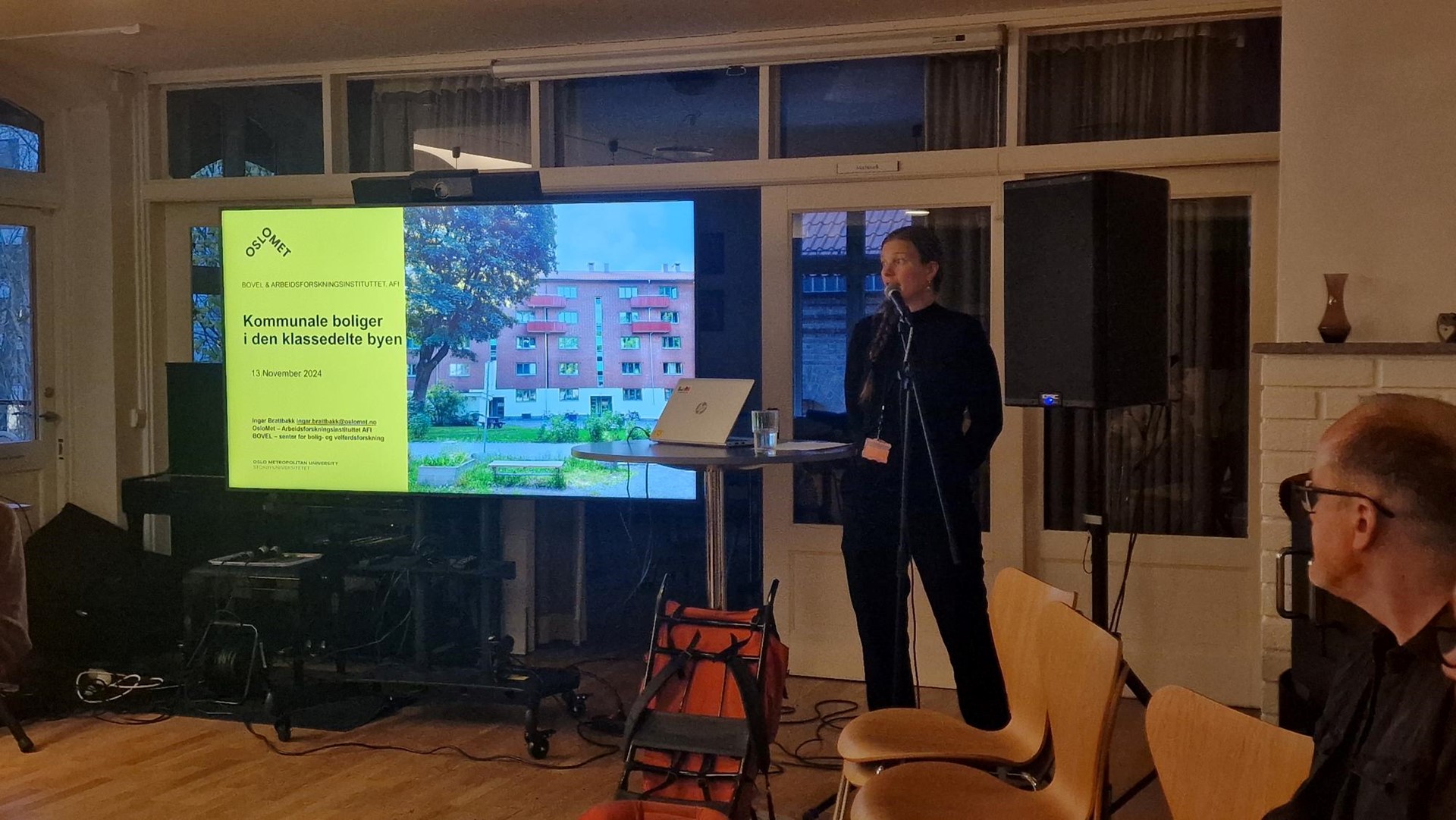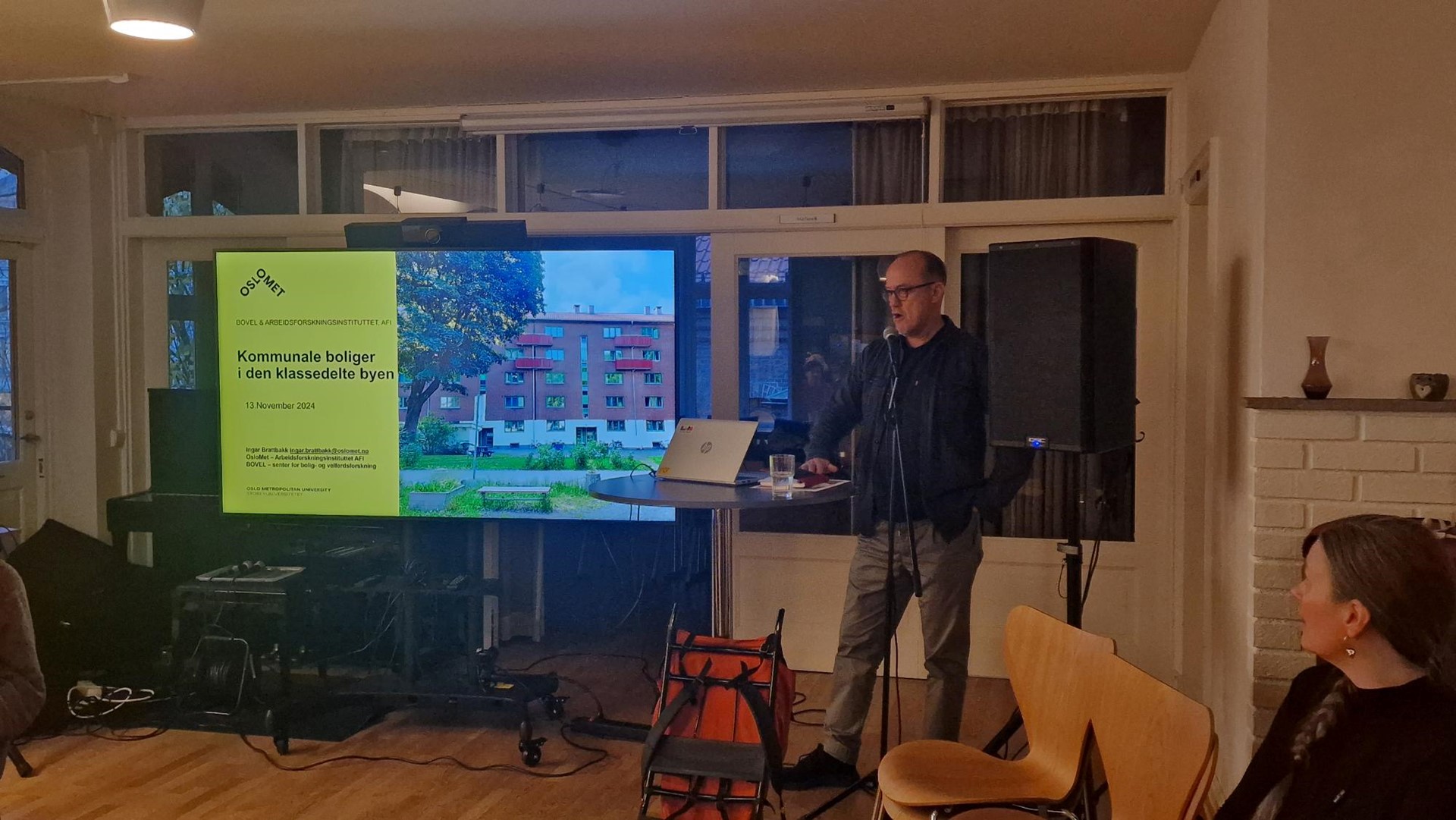 Hovedtemaet for konferansen i år var, kommunal boligsektor i den klassedelte byen. Og først ut på programmet var Ingar Brattbakk, fra Arbeidsforskningsinstituttet (AFI) og Bovel, som holdt et spennende og nyttig innlegg for oss på temaet. Som kjent eksisterer ikke kommunal boligsektor i et vakuum, men påvirkes av mange ulike variabler. På konferansen i år forsøkte vi å ta en jafs av det store bildet, og fikk god hjelp av Ingar til dette!
