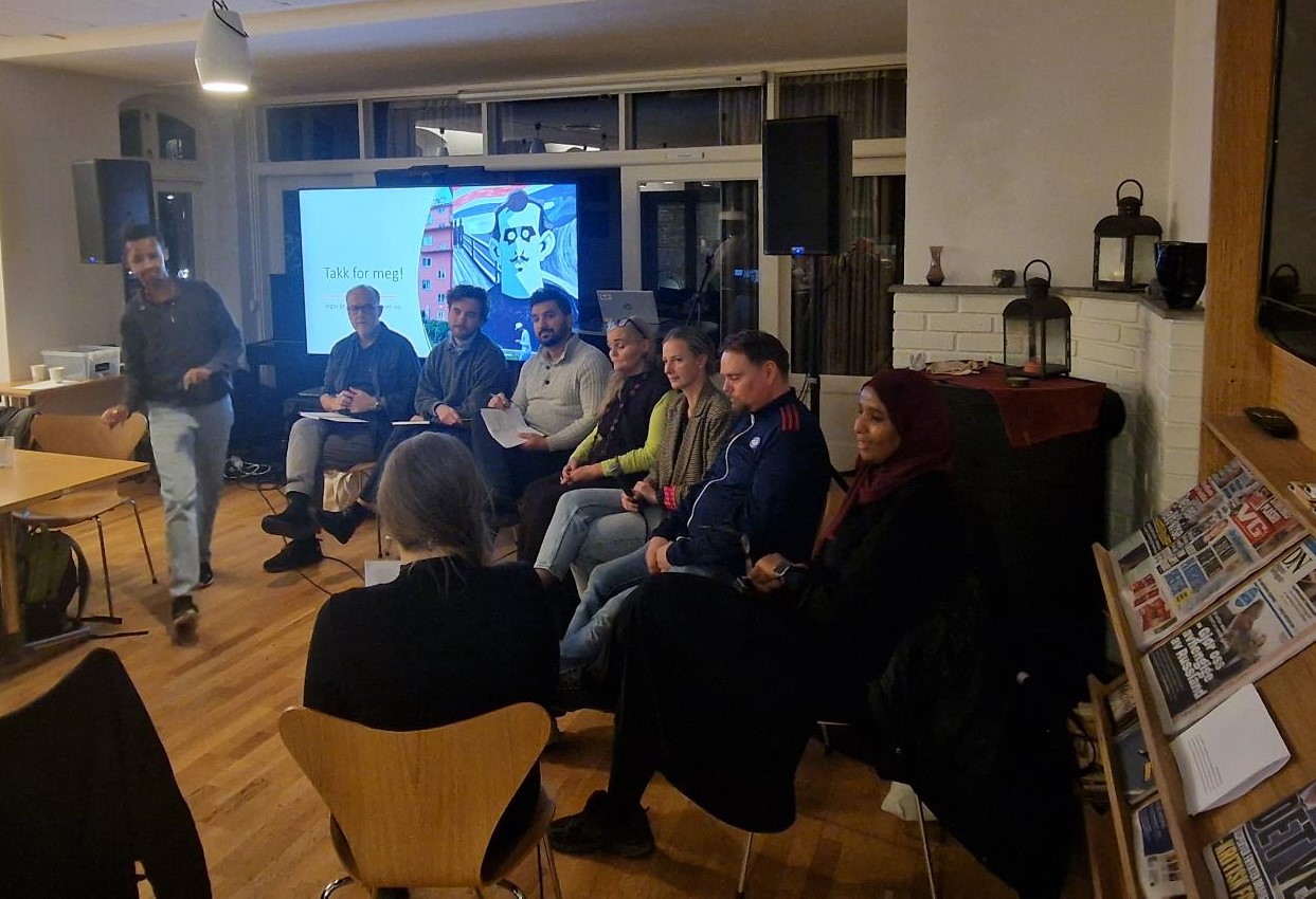 Vi gjennomførte også en panelsamtale med beboere, forskere og politikere. Vi landet i år på å ikke ha en tradisjonell debatt, men ville prøve å legge opp til en mer samlende samtale hvor vi kunne dele kunnskap og nærme oss noen forslag til løsninger for kommunal boligsektor i Oslo. Vi tenker at en trygg bolig til alle bør være et selvinnlysende tverrpolitisk mål, og vil få alle gode krefter med på laget for å oppnå det. Fra politisk hold i panelsamtalen deltok byrådssekretær for sosiale tjenester Tor Frøytvedt Dahl (V), Marian Hussein (SV), og Siavash Mobasheri (R). Vi var dermed så heldige å ha både byrådsavdelingen, Stortinget og Bystyret representert. Og siden alle var enige om at et trygt sted å bo er en helt grunnleggende forutsetning for å leve et godt liv, regner vi med et godt videre samarbeid på det boligsosiale feltet! På forskerfronten deltok Ingar Brattbakk (AFI, Bovel) og Katja Johannessen (Bovel). Og sist, men absolutt ikke minst, deltok Alf Hansen og Kine Skovdahl med sin erfaringsbaserte ekspertkunnskap om hvordan kommunal boligsektor kan oppleves ut fra et beboerperspektiv. Beboerne representerte både perspektiv fra heleide kommunale gårder og frittstående kommunale leiligheter i private borettslag eller eierseksjonssameier. Vi skrev et referat fra panelsamtalen som sendes ut og publiseres når det er klart.
