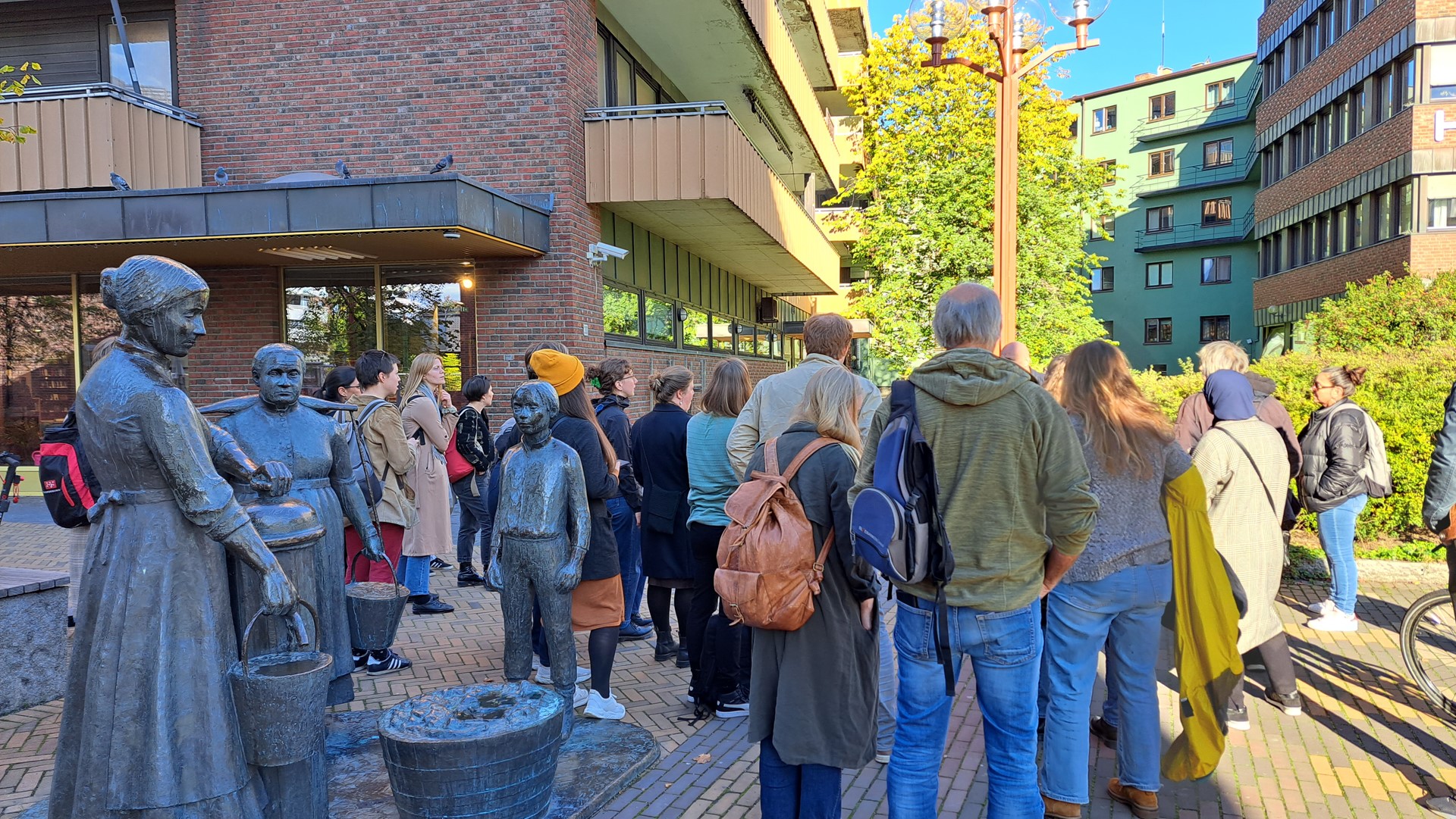 Etter panelsamtalene var det mange som deltok på bydelsvandring i Bydel Gamle Oslo. Vi var innom Enebakkveien 37 der beboer Mathias viste fram huset og den frodige byhagen som nylig vant Oslo kommunes gjeve hagepris, og vi var selvfølgelig også innom noen av de kommunale gårdene der beboerne har organisert seg i lokale gårdstyrer.