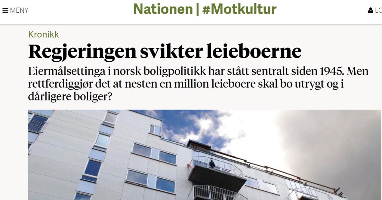De siste årene har vi fått mye ny kunnskap om leiesektoren. Mye av dette er forskning bestilt av myndighetene selv, og enkelt oppsummert kan vi sammenfatte situasjonen slik: De som leier bor med korte, tidsavgrensede leiekontrakter, leieboligene har lav standard, dårlig bomiljø, leieboerne bor trangt, har høye bokostnader og mange leieboere har lave inntekter. Den kommunale utleiesektoren er en skamplett som vi i Norge ikke kan være bekjent med. Denne situasjonen er et resultat av at leiesektoren har levd i skyggen av eierideologien i 75 år.