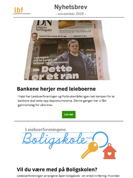 Leieboerforeningens digitale nyhetsbrev kommer omlag en gang i månden og er gratis.